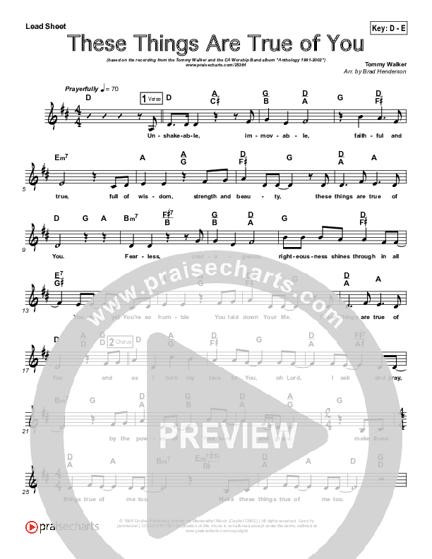 Download the sheet music for These Things Are True Of You by Tommy Walker, from the album Tommy Walker Anthology CD (1991-2002). This song was arranged by Brad Henderson in the key of D, Eb.