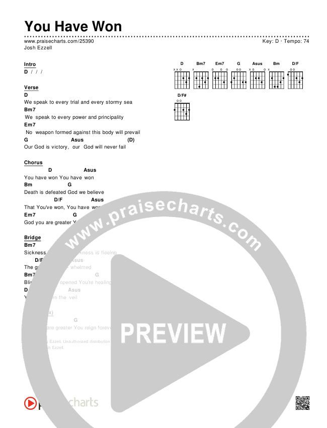 Download the PDF Chord Charts for You Have Won by Josh Ezzell, from the album SongQuest 01 - Summer 2014.