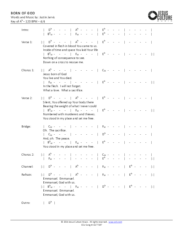 Born Of God Chords PDF (Jesus Culture)
