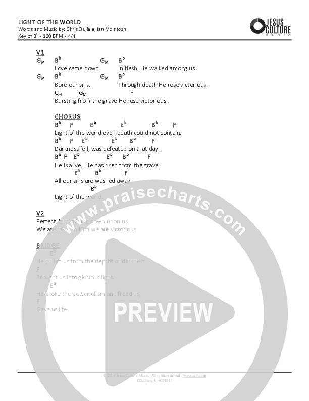 Light Of The World Chords PDF (Jesus Culture)