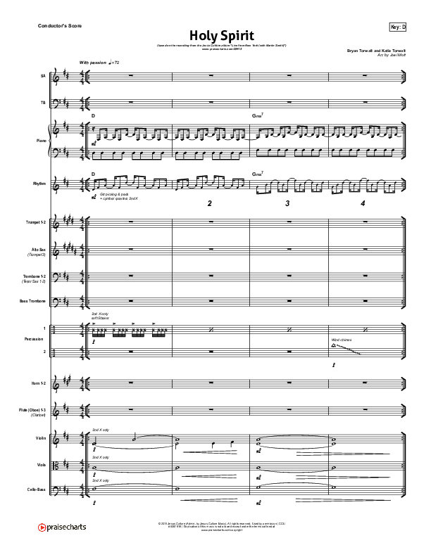 Download the Orchestration for Holy Spirit by Jesus Culture / Martin Smith, from the album Live From New York (with Martin Smith). This song was arranged by Joel Mott in the key of C, D, E, Eb, F, G.