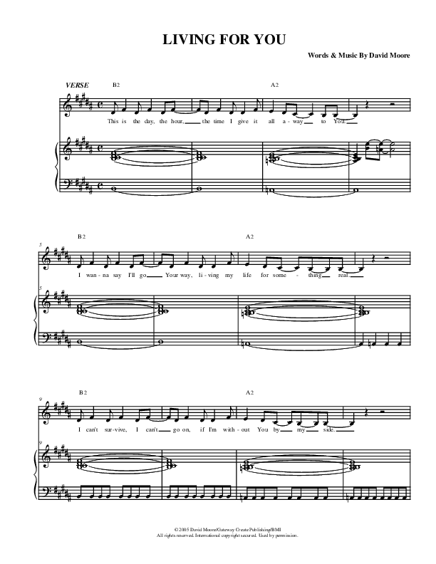 Download the sheet music for Living For You by Christ For The Nations, from the album Upside Down.