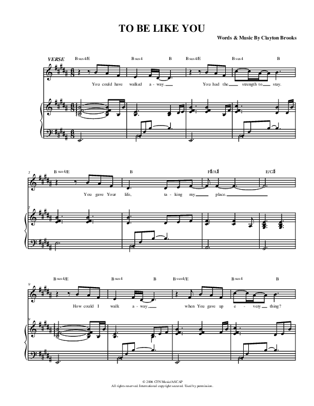 Download the sheet music for To Be Like You by Christ For The Nations, from the album Upside Down.