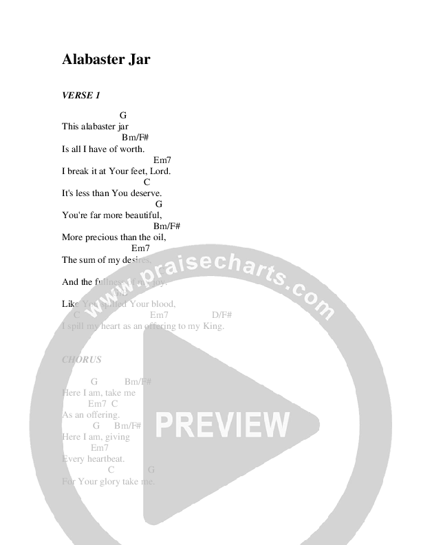 Alabaster Jar Chord Chart (Christ For The Nations)
