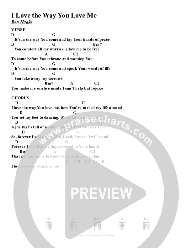 I Love The Way You Love Me Chords PDF (Christ For The Nations)