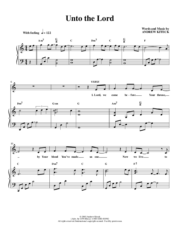 Download the sheet music for Unto The Lord by Christ For The Nations, from the album Imagine.
