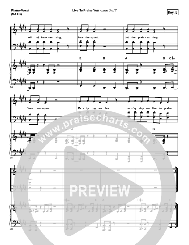 Download the sheet music for Live To Praise You by Lincoln Brewster, from the album Oxygen. This song was arranged by Daniel Galbraith in the key of E, Eb.