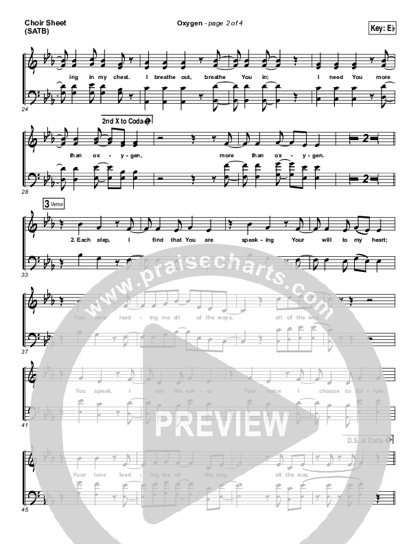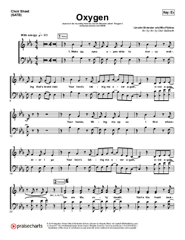 Download the Choir Sheet for Oxygen by Lincoln Brewster, from the album Oxygen. This song was arranged by Daniel Galbraith in the key of D, Eb.