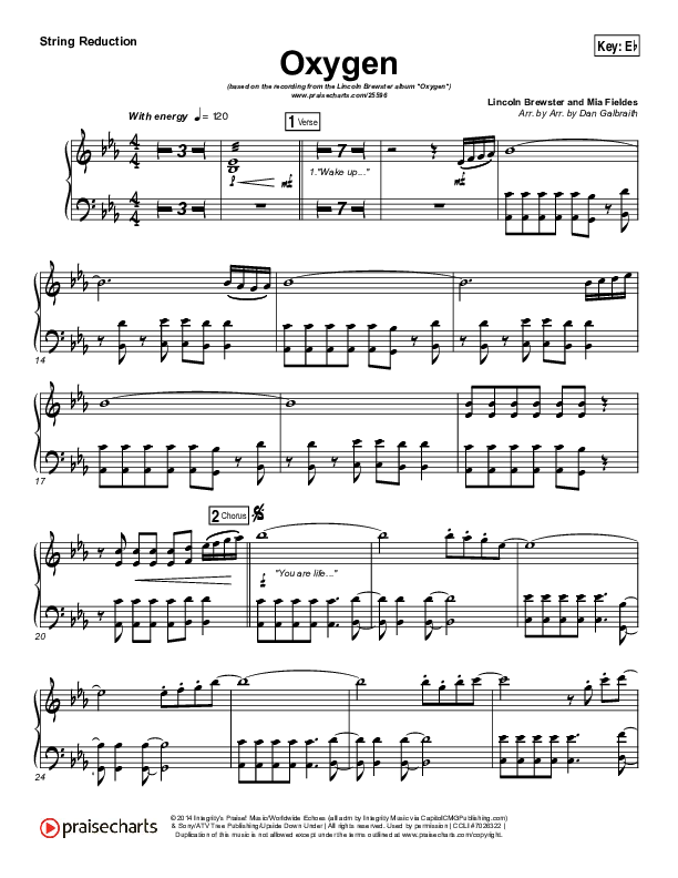 Download the Orchestration string parts for Oxygen by Lincoln Brewster, from the album Oxygen. This song was arranged by Daniel Galbraith in the key of D, Eb.