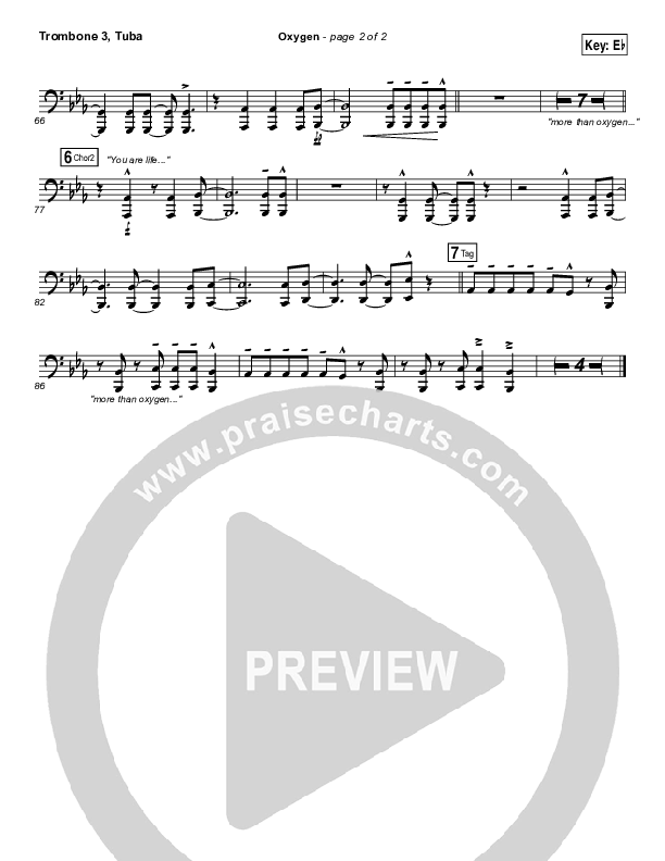 Download the Trombone 3/Tuba sheet music for Oxygen by Lincoln Brewster, from the album Oxygen. This song was arranged by Daniel Galbraith in the key of D, Eb.