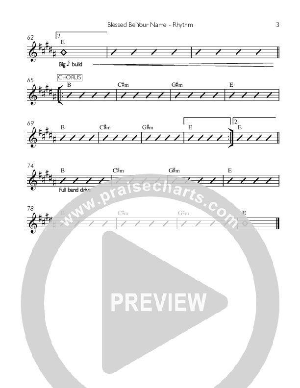 Download the Rhythm Chart for Blessed Be Your Name by Valley Worship / Christopher Fink, from the album Vow.
