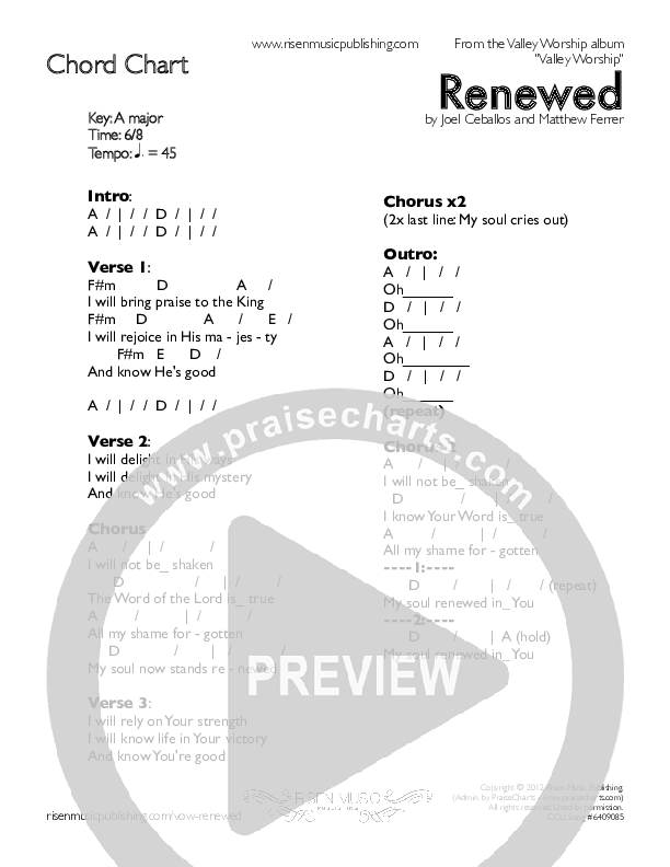 Download the PDF Chord Charts for Renewed by Valley Worship / Joel Ceballos, from the album Vow.