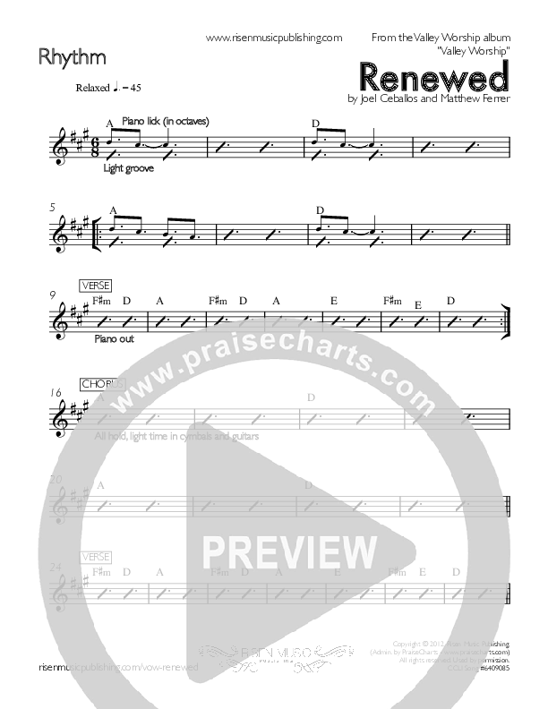 Download the Rhythm Chart for Renewed by Valley Worship / Joel Ceballos, from the album Vow.