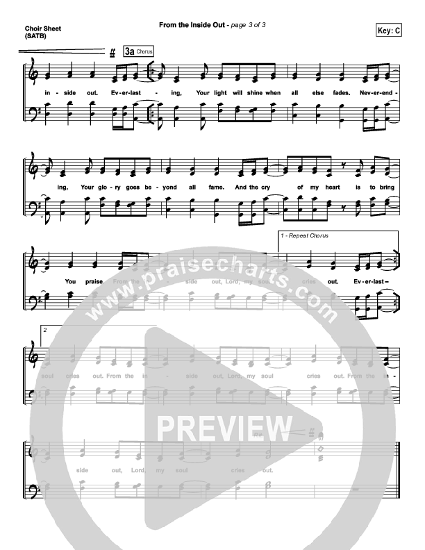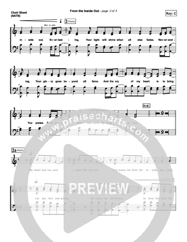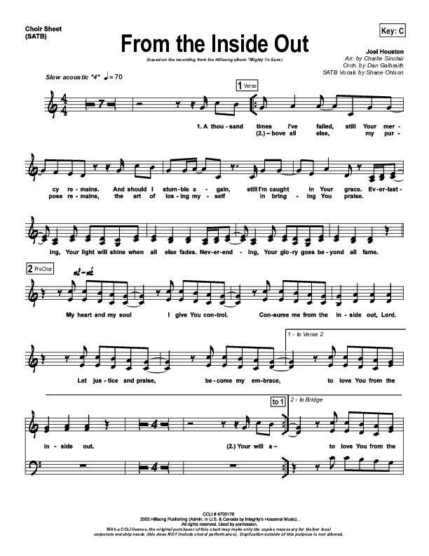Download the Choir Sheet for From The Inside Out by Hillsong Worship, from the album Mighty To Save. This song was arranged by Daniel Galbraith in the key of Bb, C.