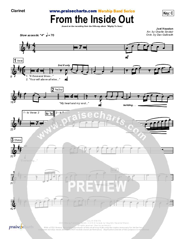 Download the Orchestration for From The Inside Out by Hillsong Worship, from the album Mighty To Save. This song was arranged by Daniel Galbraith in the key of Bb, C.