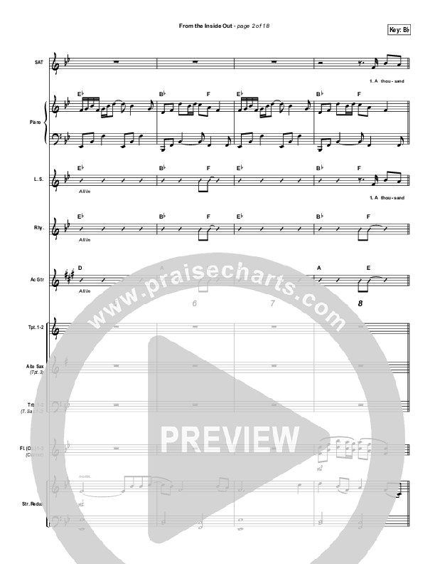 Download the Easy Band Orchestration for From The Inside Out by Hillsong Worship, from the album Mighty To Save. This song was arranged by Daniel Galbraith in the key of Bb, C.