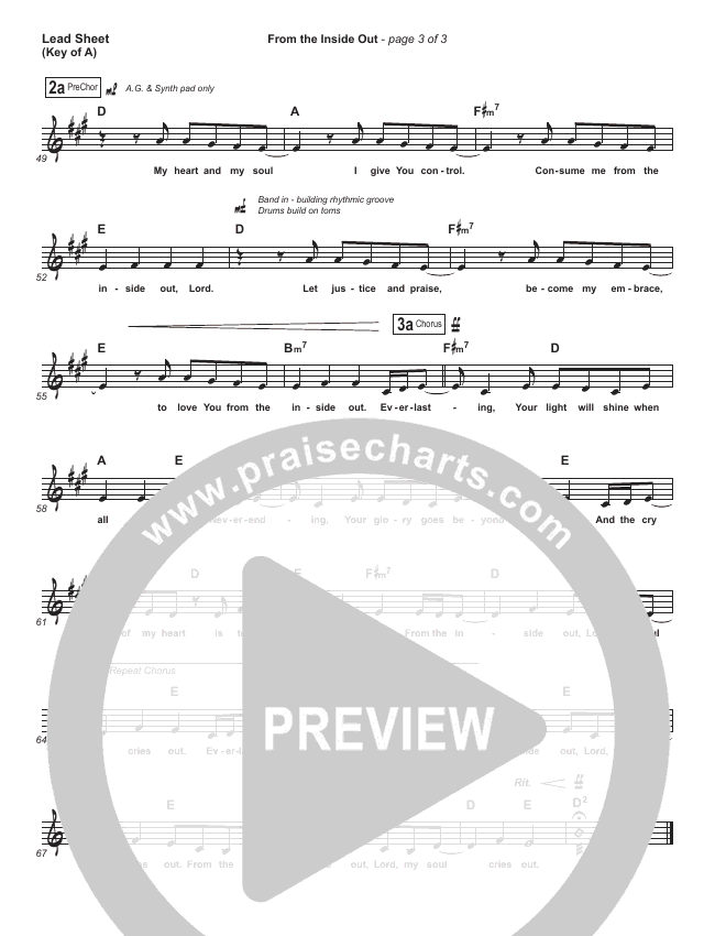 Download the sheet music for From The Inside Out by Hillsong Worship, from the album Mighty To Save. This song was arranged by Daniel Galbraith in the key of Bb, C.