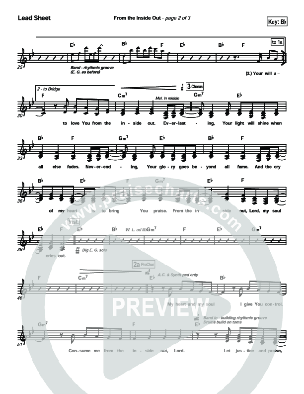 Download the sheet music for From The Inside Out by Hillsong Worship, from the album Mighty To Save. This song was arranged by Daniel Galbraith in the key of Bb, C.