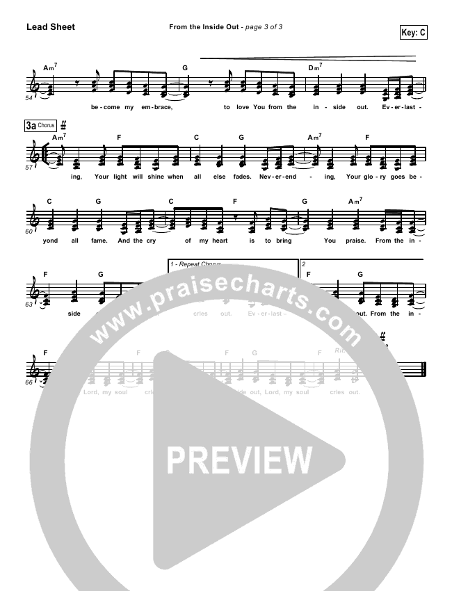 Download the sheet music for From The Inside Out by Hillsong Worship, from the album Mighty To Save. This song was arranged by Daniel Galbraith in the key of Bb, C.