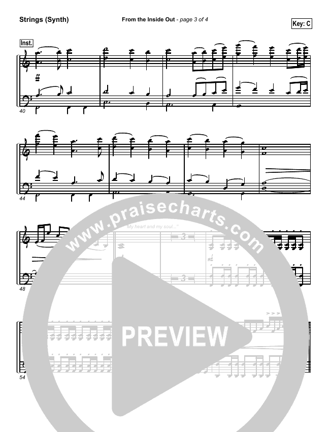 Download the Orchestration string parts for From The Inside Out by Hillsong Worship, from the album Mighty To Save. This song was arranged by Daniel Galbraith in the key of Bb, C.