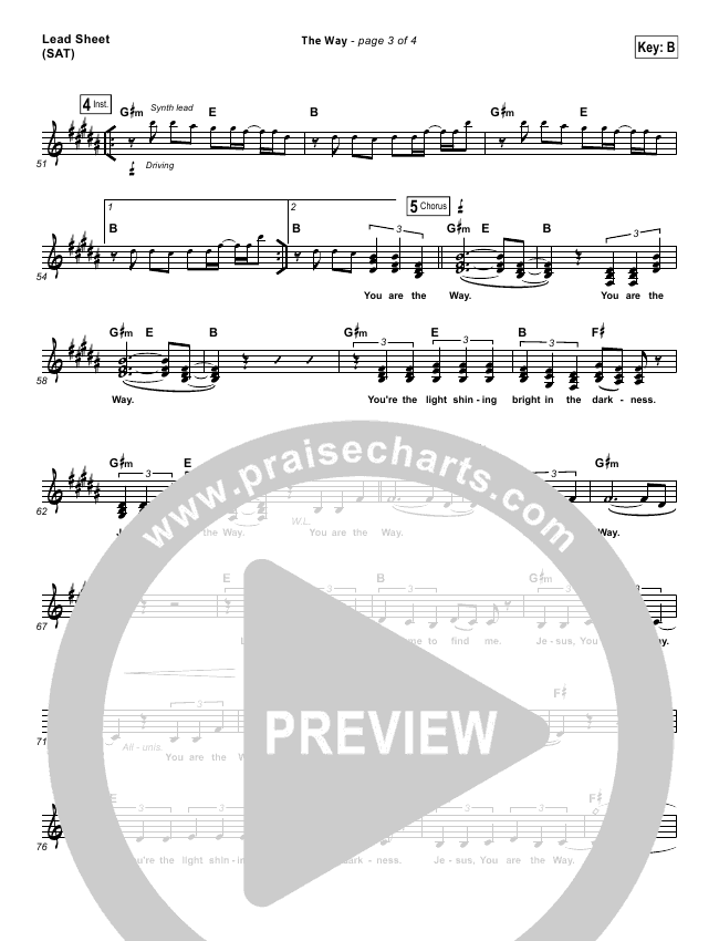 Download the sheet music for The Way by Worship Central, from the album Set Apart. This song was arranged by Erik Foster / Daniel Galbraith in the key of B, Bb.