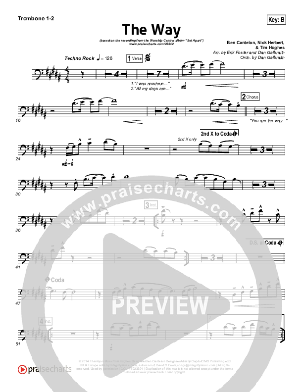 Download the Trombone 1,2 sheet music for The Way by Worship Central, from the album Set Apart. This song was arranged by Erik Foster / Daniel Galbraith in the key of B, Bb.