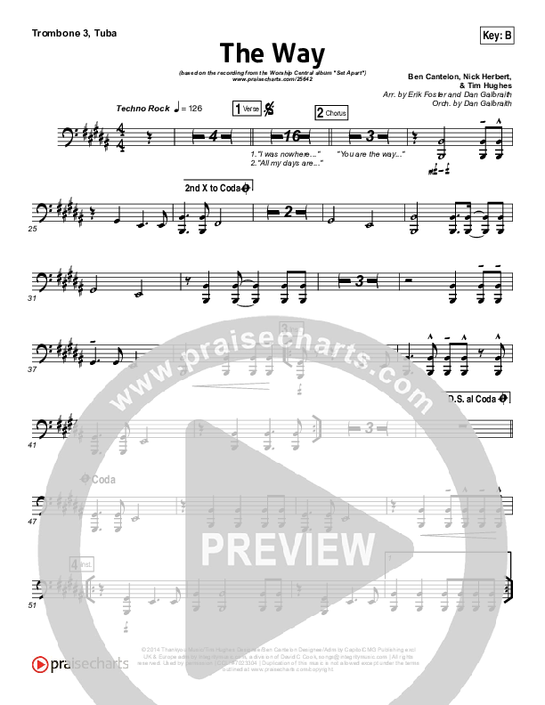 Download the Trombone 3/Tuba sheet music for The Way by Worship Central, from the album Set Apart. This song was arranged by Erik Foster / Daniel Galbraith in the key of B, Bb.