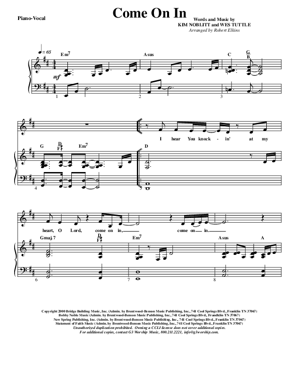 Download the sheet music for Come On In by G3 Kids, from the album Laser Lime.