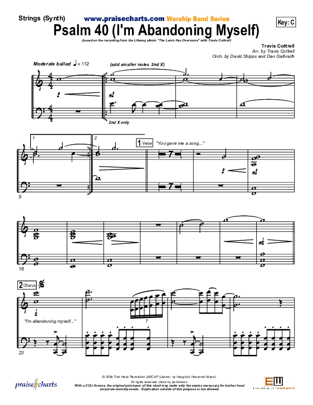 Download the Orchestration for Psalm 40 (Abandoning Myself) by Travis Cottrell, from the album Living Proof Live 3 - The Lamb Has Overcome. This song was arranged by Daniel Galbraith / David Shipps in the key of C, Db.