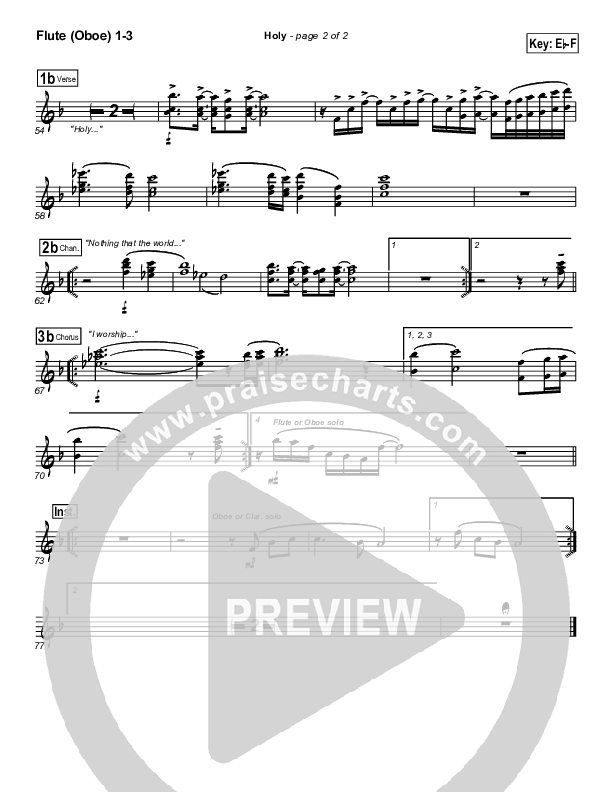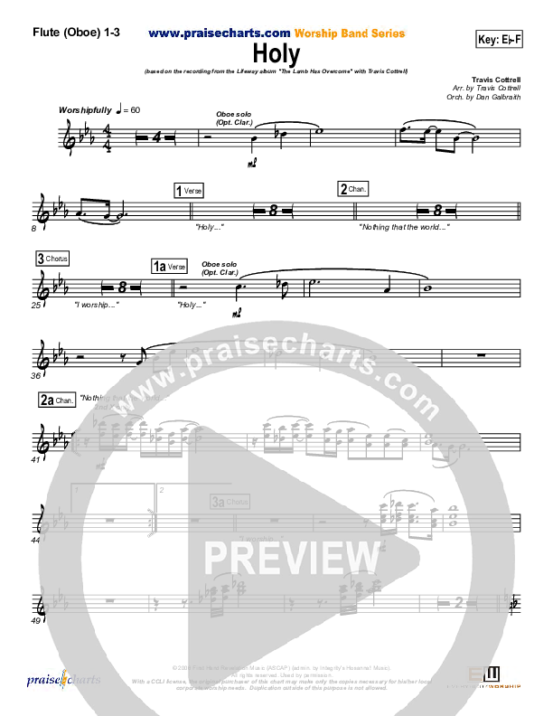 Download the Flute/Oboe sheet music for Holy by Travis Cottrell, from the album Living Proof Live 3 - The Lamb Has Overcome. This song was arranged by Daniel Galbraith in the key of Eb, F.