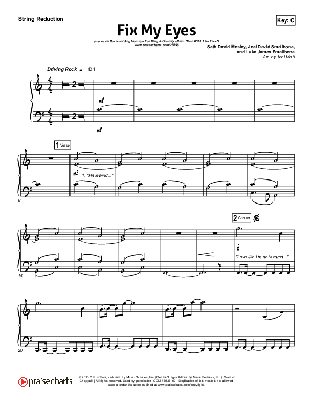 Download the Orchestration for Fix My Eyes by for KING & COUNTRY, from the album Run Wild Live Free. This song was arranged by Joel Mott in the key of Bb, C.