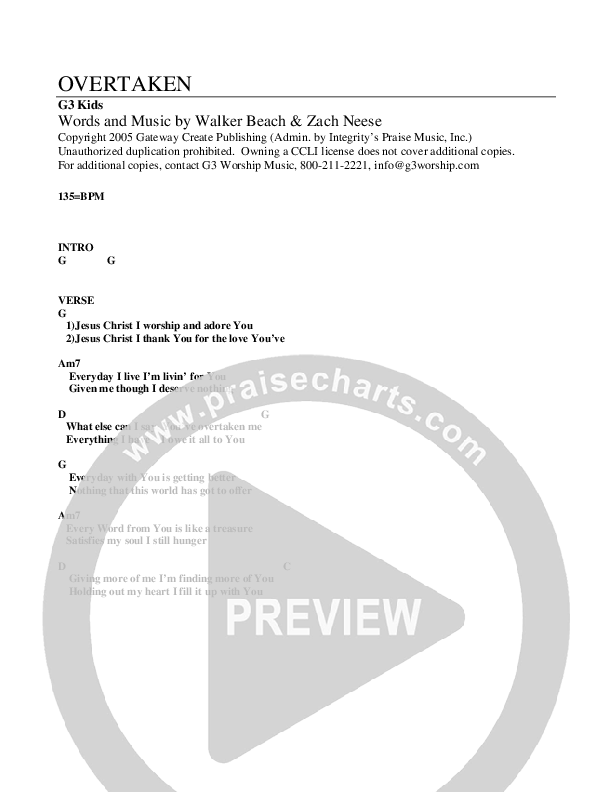 Download the PDF Chord Charts for Overtaken by G3 Kids, from the album Chocolate.