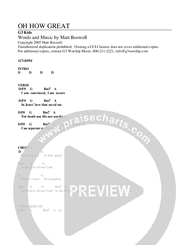 Oh How Great Chords PDF (G3 Kids)