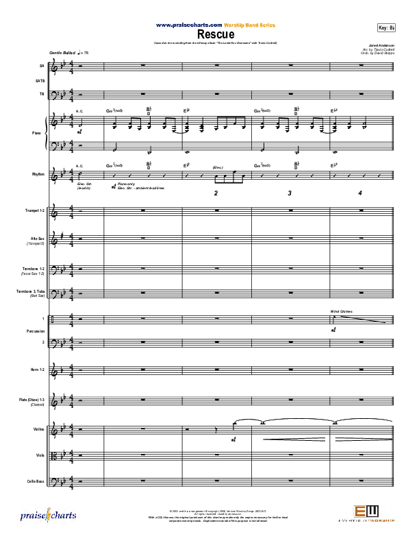 Download the Orchestration for Rescue by Travis Cottrell, from the album Living Proof Live 3 - The Lamb Has Overcome. This song was arranged by David Shipps in the key of Bb, C.