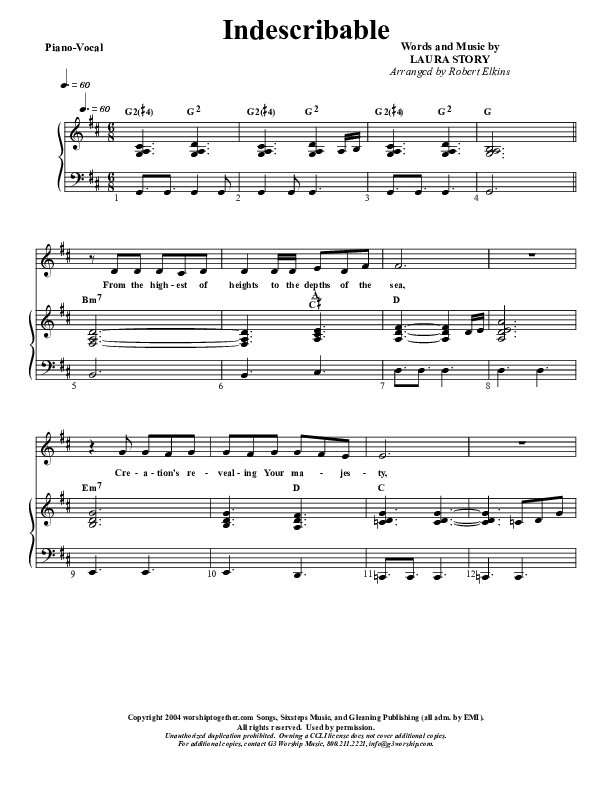 Indescribable Sheet Music PDF (G3 Kids)