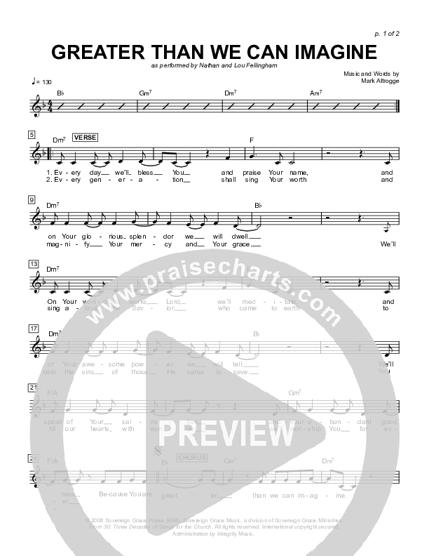 Download the Orchestration for Greater Than We Can Imagine by Sovereign Grace / Nathan Fellingham / Lou Fellingham, from the album 30: Three Decades Of Songs For The Church.