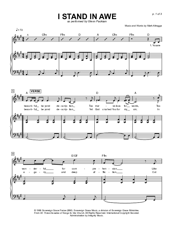 Download the sheet music for I Stand In Awe by Sovereign Grace / Glenn Packiam, from the album 30: Three Decades Of Songs For The Church.