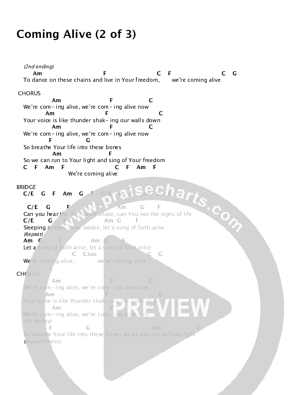 Download the PDF Chord Charts for Coming Alive by Dustin Smith, from the album Coming Alive. This song was arranged by Integrity Music in the key of C.