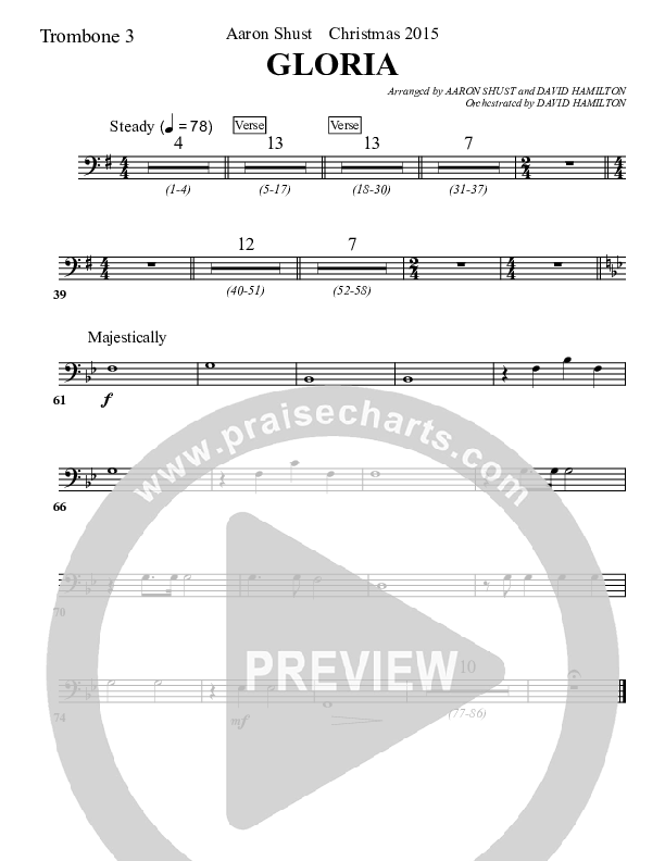 Download the Orchestration for Gloria by Aaron Shust, from the album Unto Us. This song was arranged by David Hamilton / Erik Foster in the key of G.