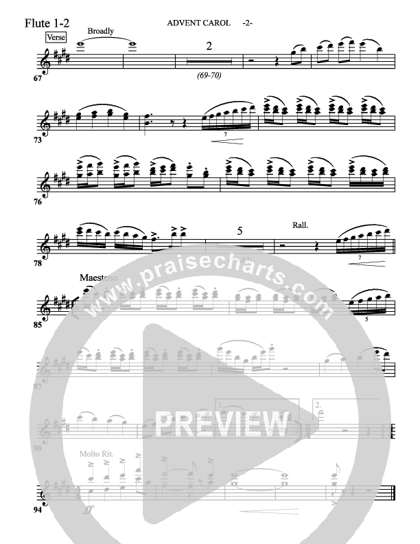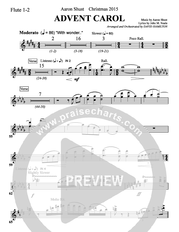 Download the Flute sheet music for Advent Carol by Aaron Shust, from the album Unto Us. This song was arranged by David Hamilton / Lee Marcum in the key of B.