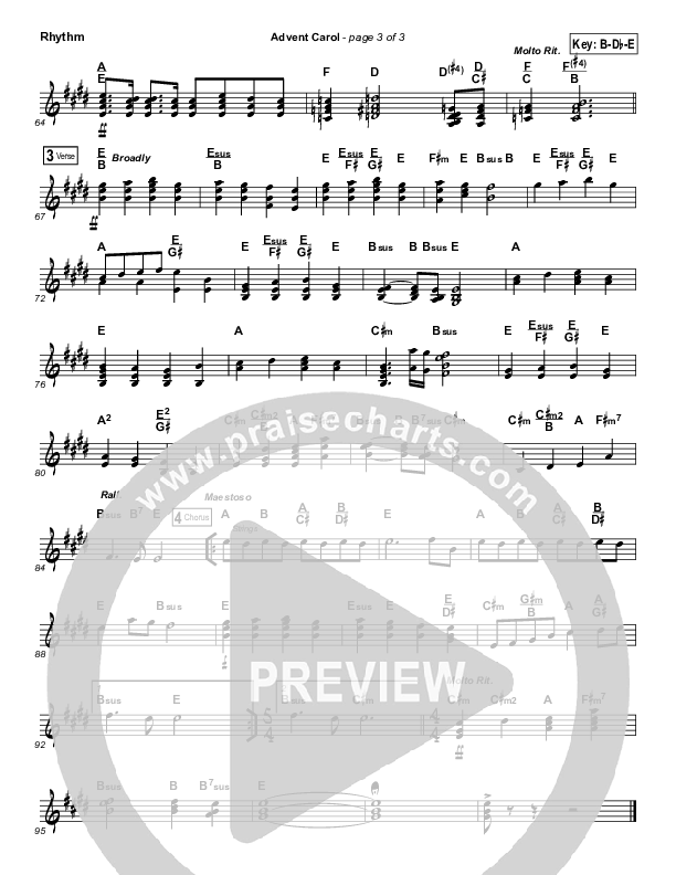 Download the Rhythm Chart for Advent Carol by Aaron Shust, from the album Unto Us. This song was arranged by David Hamilton / Lee Marcum in the key of B.