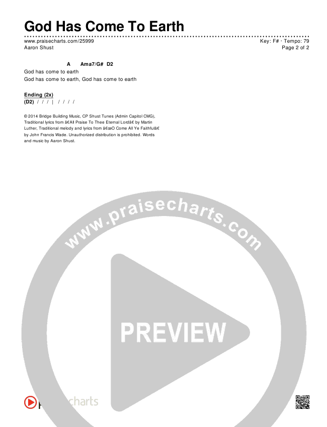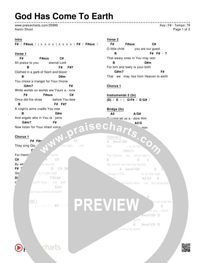 God Has Come To Earth Chords PDF (Aaron Shust)