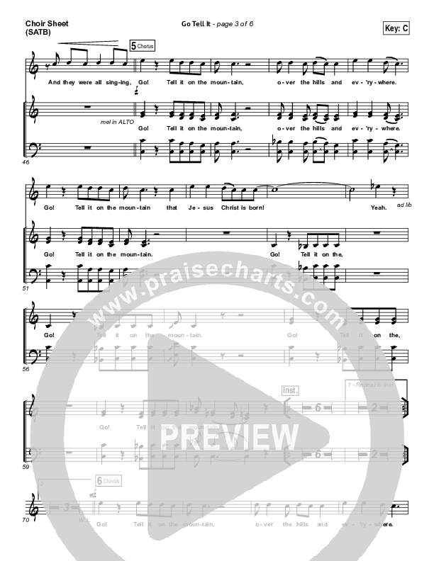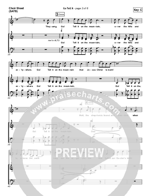 Discover popular versions of "Go Tell It On The Mountain," a Christmas classic proclaiming the joyful news of Christ's birth. These renditions add festive energy to seasonal worship. Download chord charts, lead sheets, orchestrations, and multitracks to bring this powerful message of Christ's arrival to your Christmas services.
