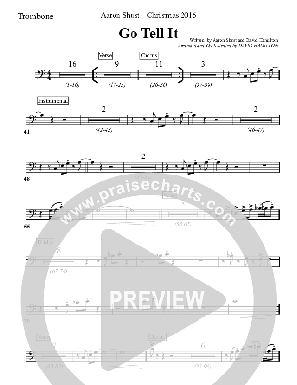 Download the Orchestration for Go Tell It by Aaron Shust, from the album Unto Us. This song was arranged by Joel Mott / Erik Foster in the key of Bb.