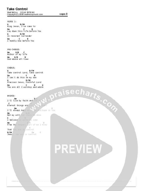 Download the PDF Chord Charts for Take Control by Matt McCoy, from the album Heaven Calling.