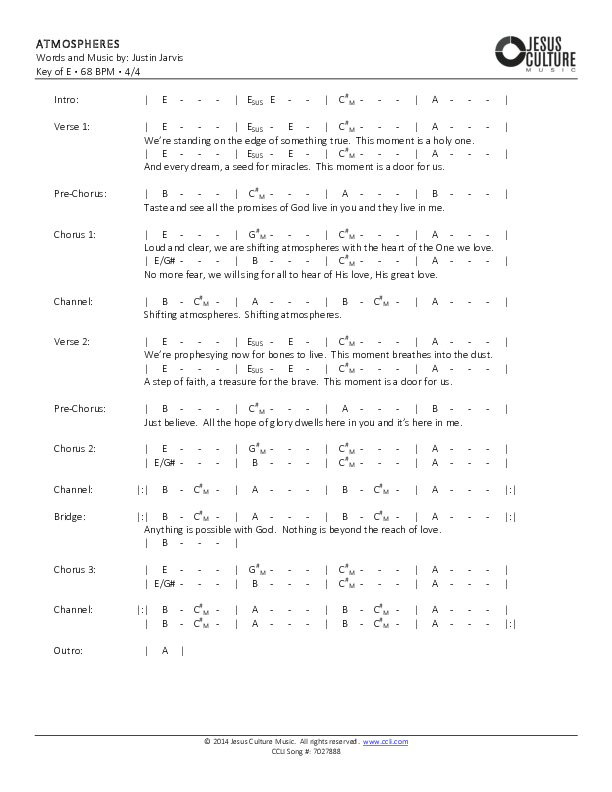 Download the PDF Chord Charts for Atmospheres by Justin Jarvis, from the album Atmospheres.