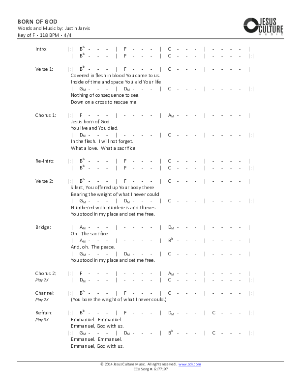 Born Of God Chords PDF (Justin Jarvis)