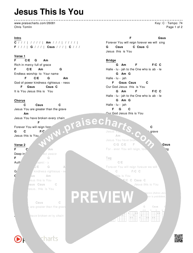 Jesus This Is You Chords PDF (Chris Tomlin)