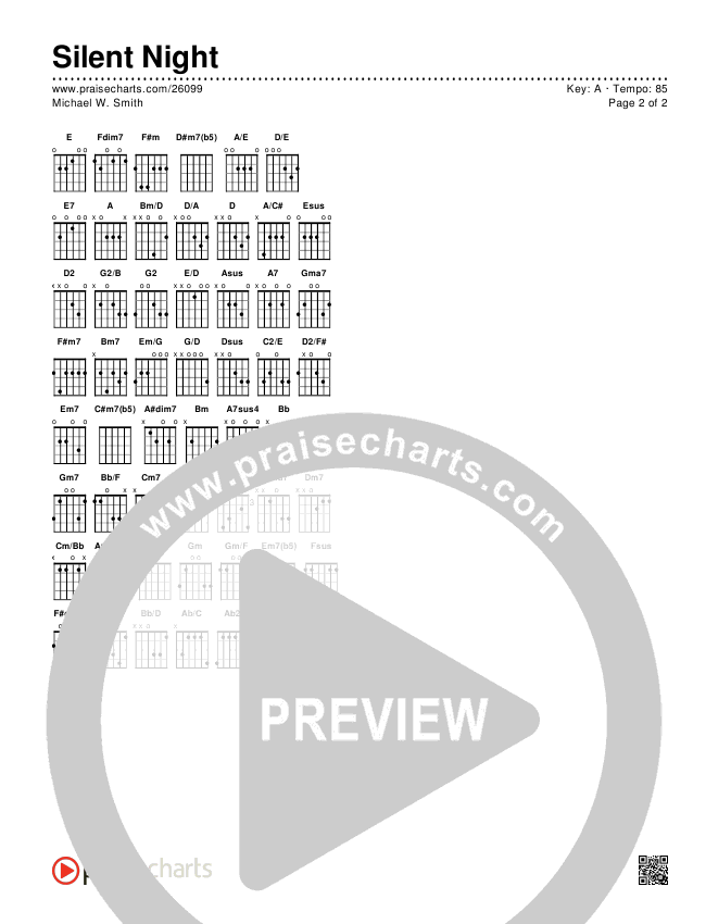 Download the PDF Chord Charts for Silent Night by Michael W. Smith, from the album The Spirit Of Christmas. This song was arranged by Lee Marcum in the key of A, Ab.