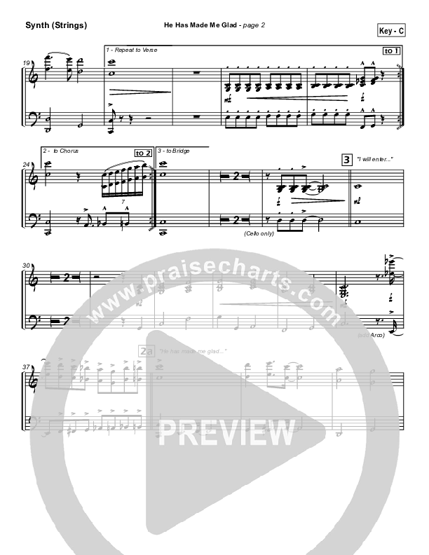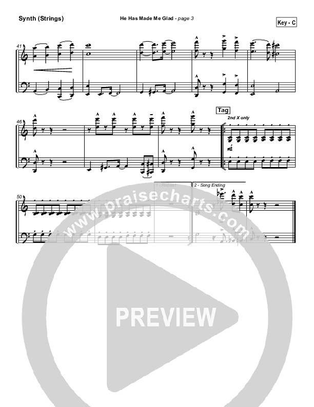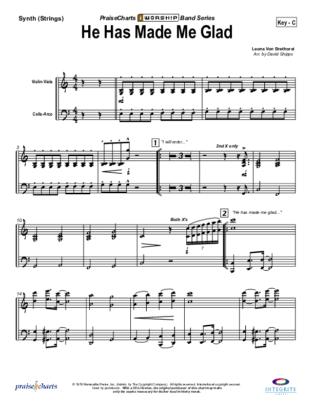 Download the Orchestration for He Has Made Me Glad by Leona Von Brethorst, from the album iWorship: DVD A. This song was arranged by Daniel Galbraith / David Shipps in the key of Bb, C.